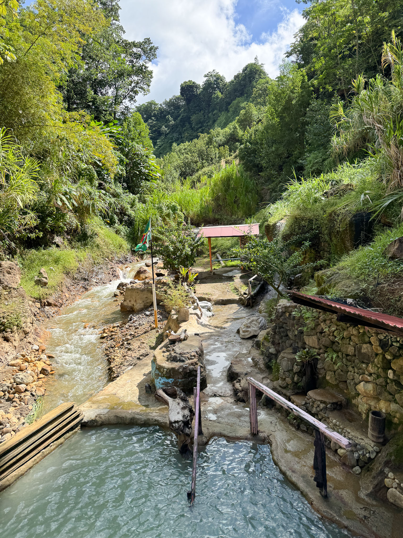 Hiking in the mountains to different waterfalls, and visiting hot springs