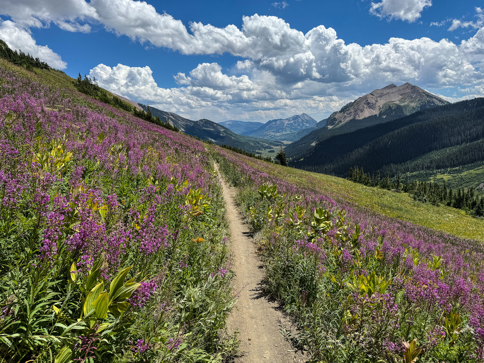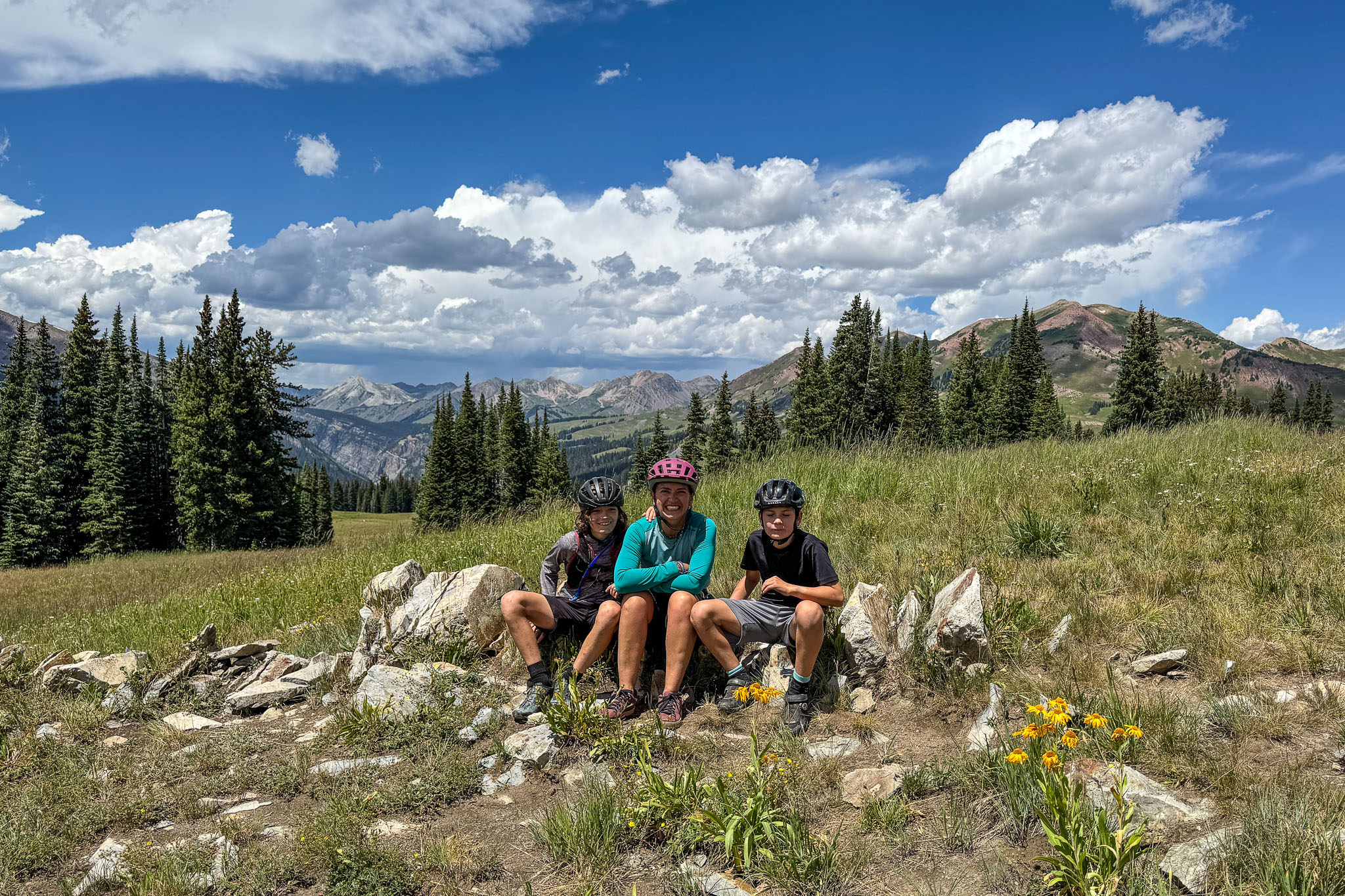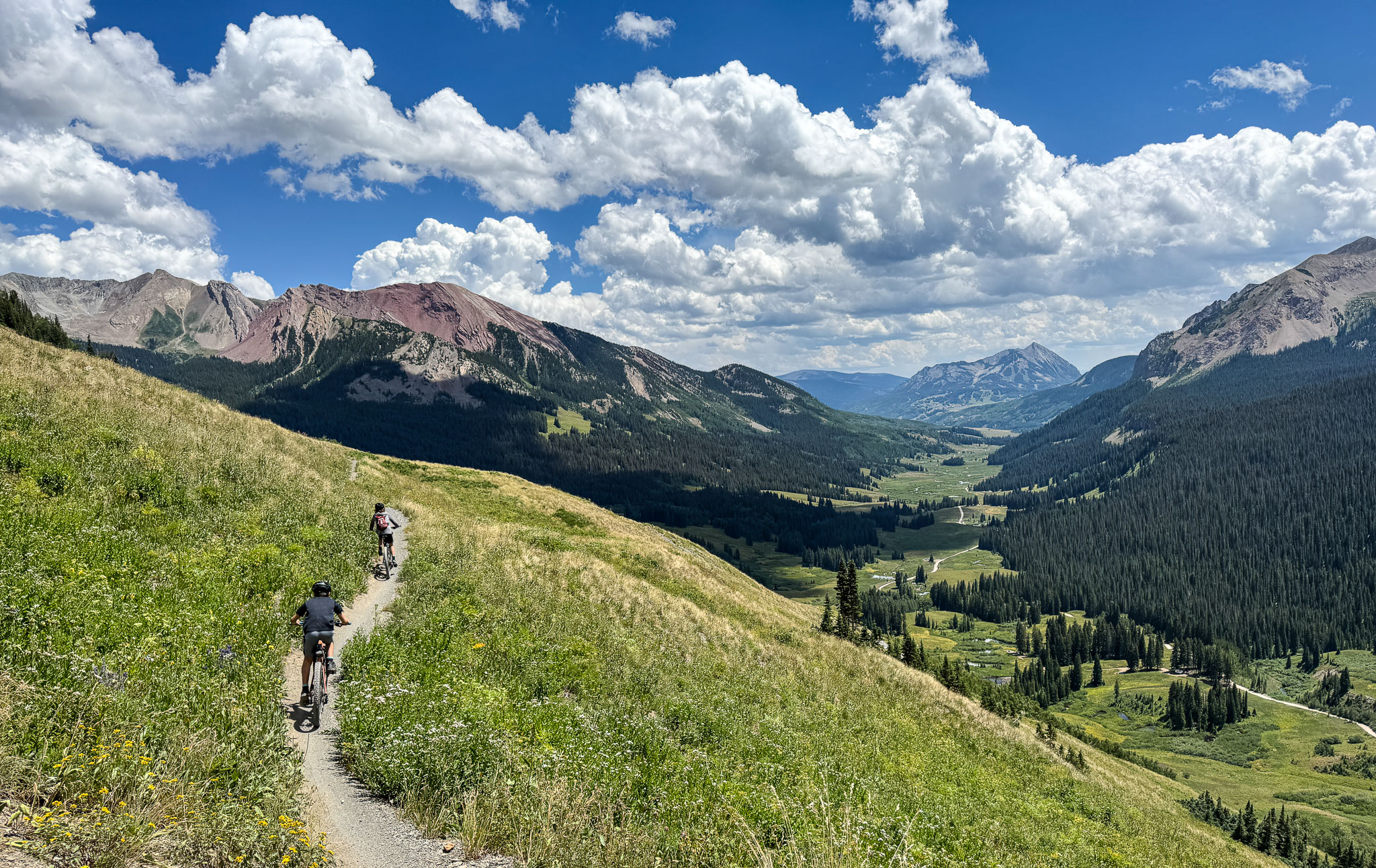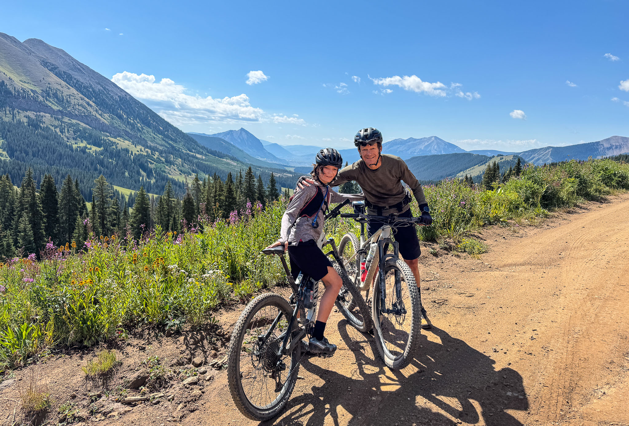 Great Mountain biking days in Crested Butte on the 401 trail and a climb (walk) up Pearl Pass to 12705 feet elevation